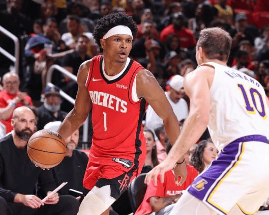 上半场火箭就占了便宜:湖人失误多得像漏勺,火箭56-47领先9分。小贾巴里史密斯7分2板2助2抢断,申京14分,阿门11分,谢泼德10分,年轻人打出了团队篮球的精髓。湖人这边,艾顿两节砍下15分8板,但詹姆斯是唯一靠谱的,其他角色球员靠“谁上谁爆发”硬撑,火箭防得直摇头。