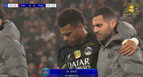 比赛第63分钟,巴黎圣日耳曼的法国前锋杜埃伤退,巴尔科拉随后替补登场。